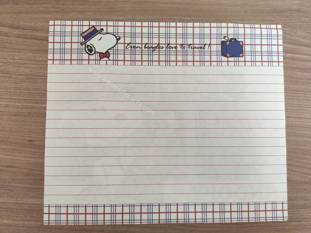 Papel de carta importado do Snoopy, tamanho médio.