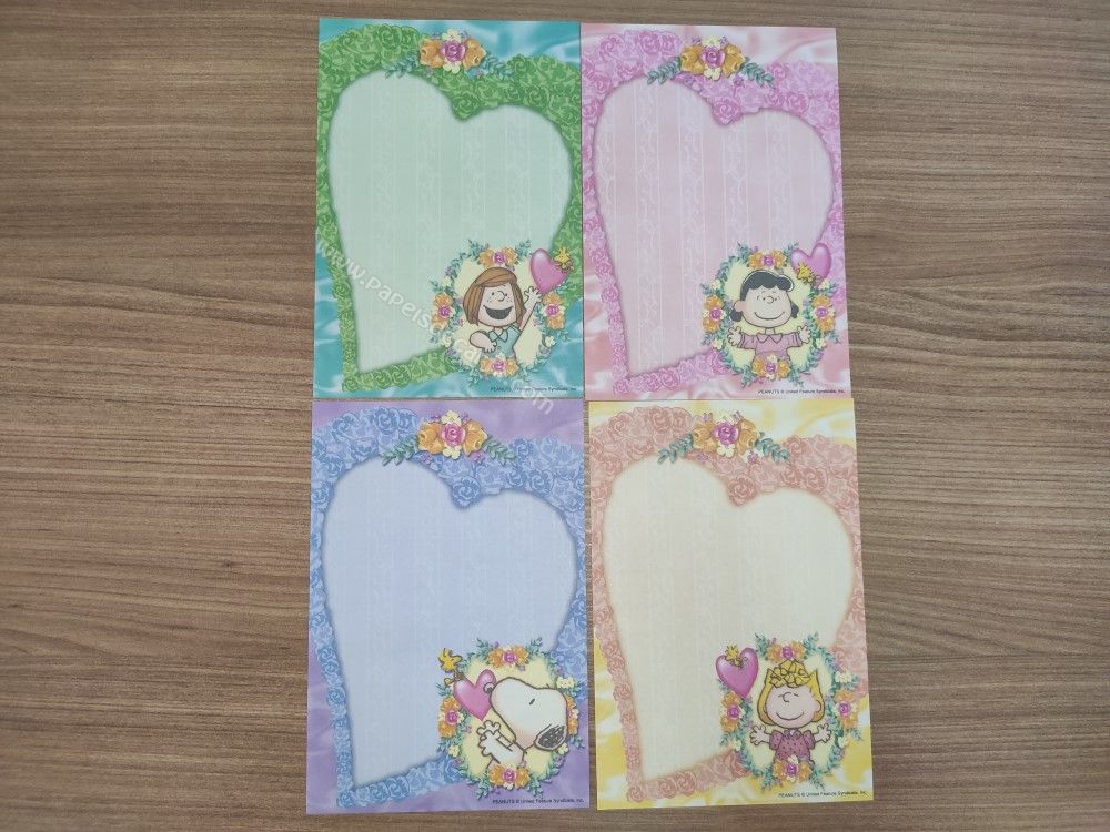 Conjunto importado, de papel de carta com 4 notinhas diferentes do Snoopy.