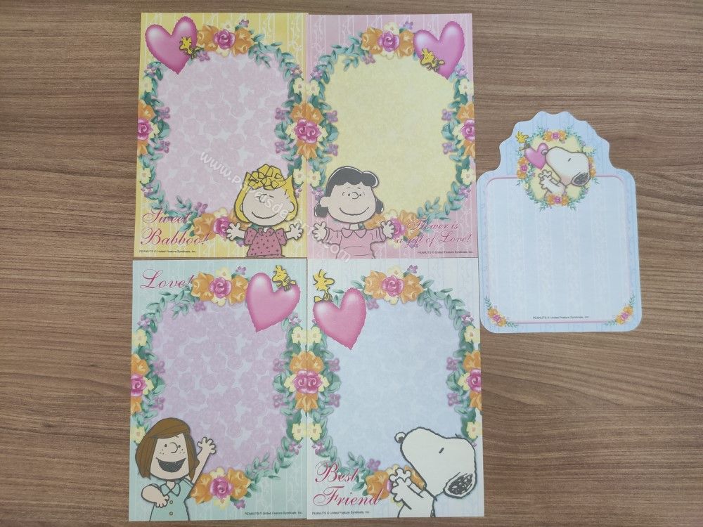 Conjunto importado, de papel de carta com 5 notinhas diferentes do Snoopy.