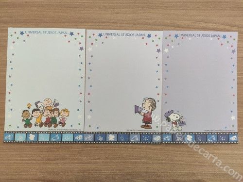 Lote de notinhas importadas, de papel de carta com 3 papéis diferentes do Snoopy.