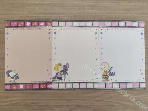 Lote de notinhas importadas, de papel de carta com 3 papéis diferentes do Snoopy.