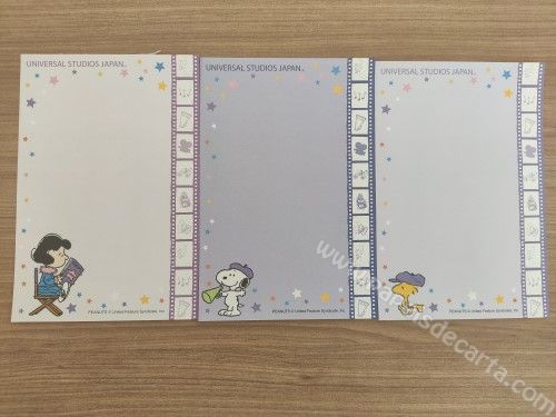 Lote de notinhas importadas, de papel de carta com 3 papéis diferentes do Snoopy.