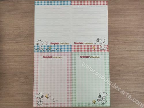 Lote com 4 papéis de carta importado, tamanho médio do Snoopy.