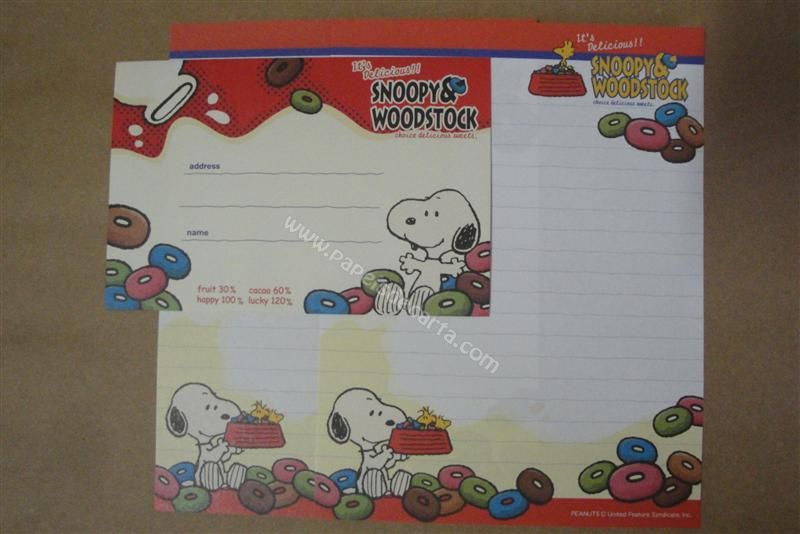 Conjunto importado, de papel de carta com 2 folhas iguais e 1 envelope do Snoopy, da linha "It"s Delicious!!".