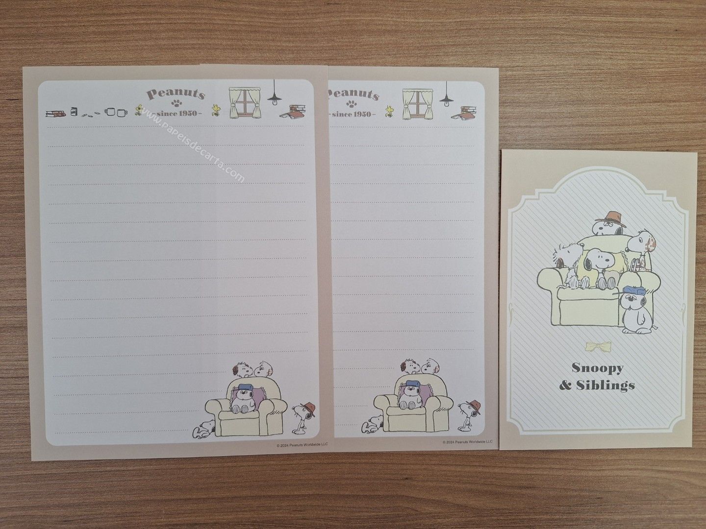 Conjunto de Papel de carta importado do Snoopy, tamanho médio, com 2 folhas e 1 envelope.