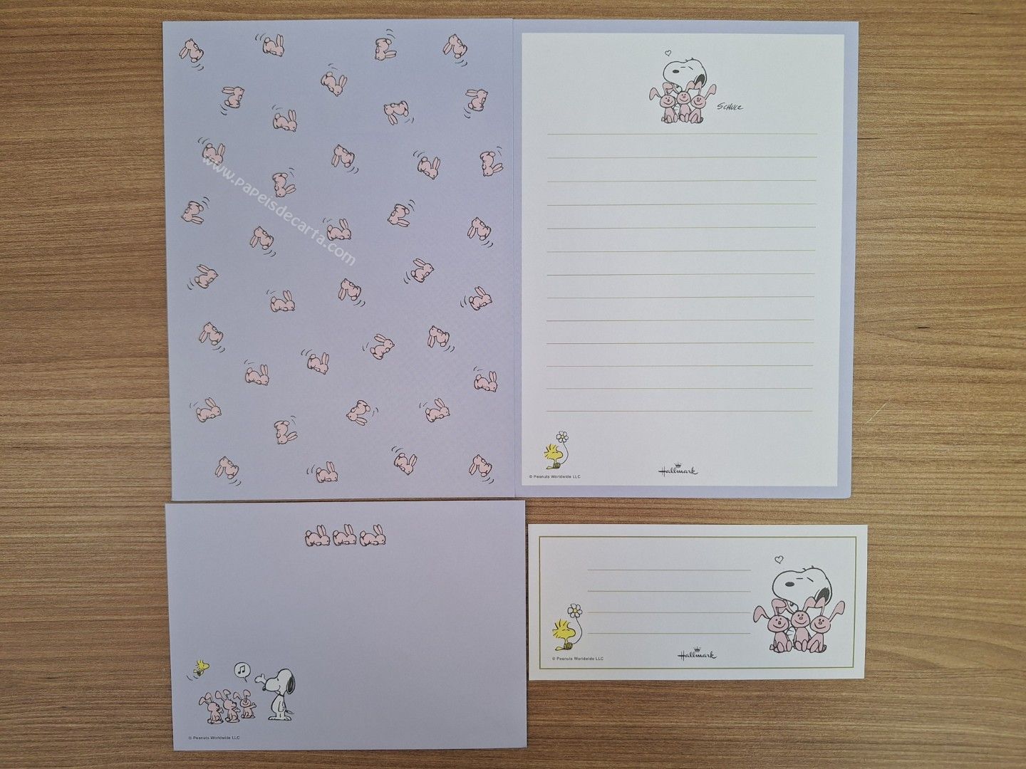 Conjunto de Papel de carta importado do Snoopy, tamanho médio, com 3 folhas e 1 envelope.