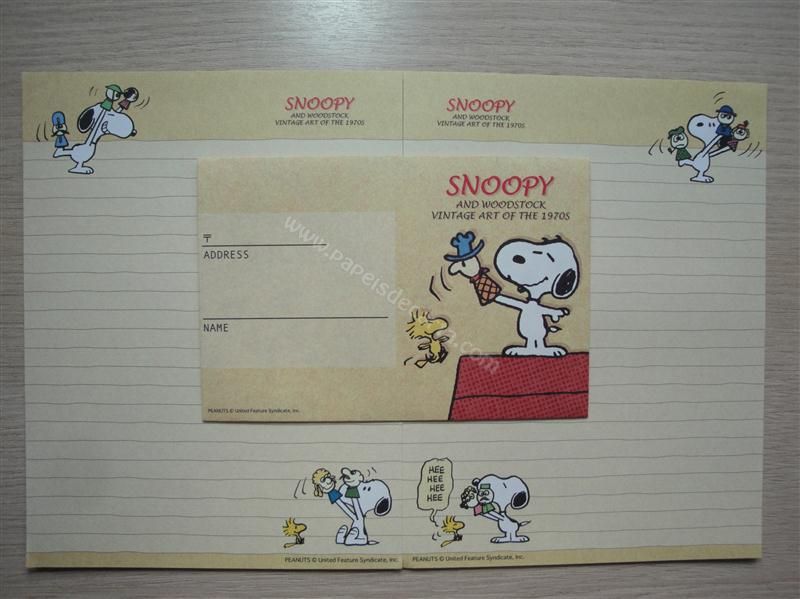 Conjunto com 2 folhas e 1 envelope do Snoopy 01