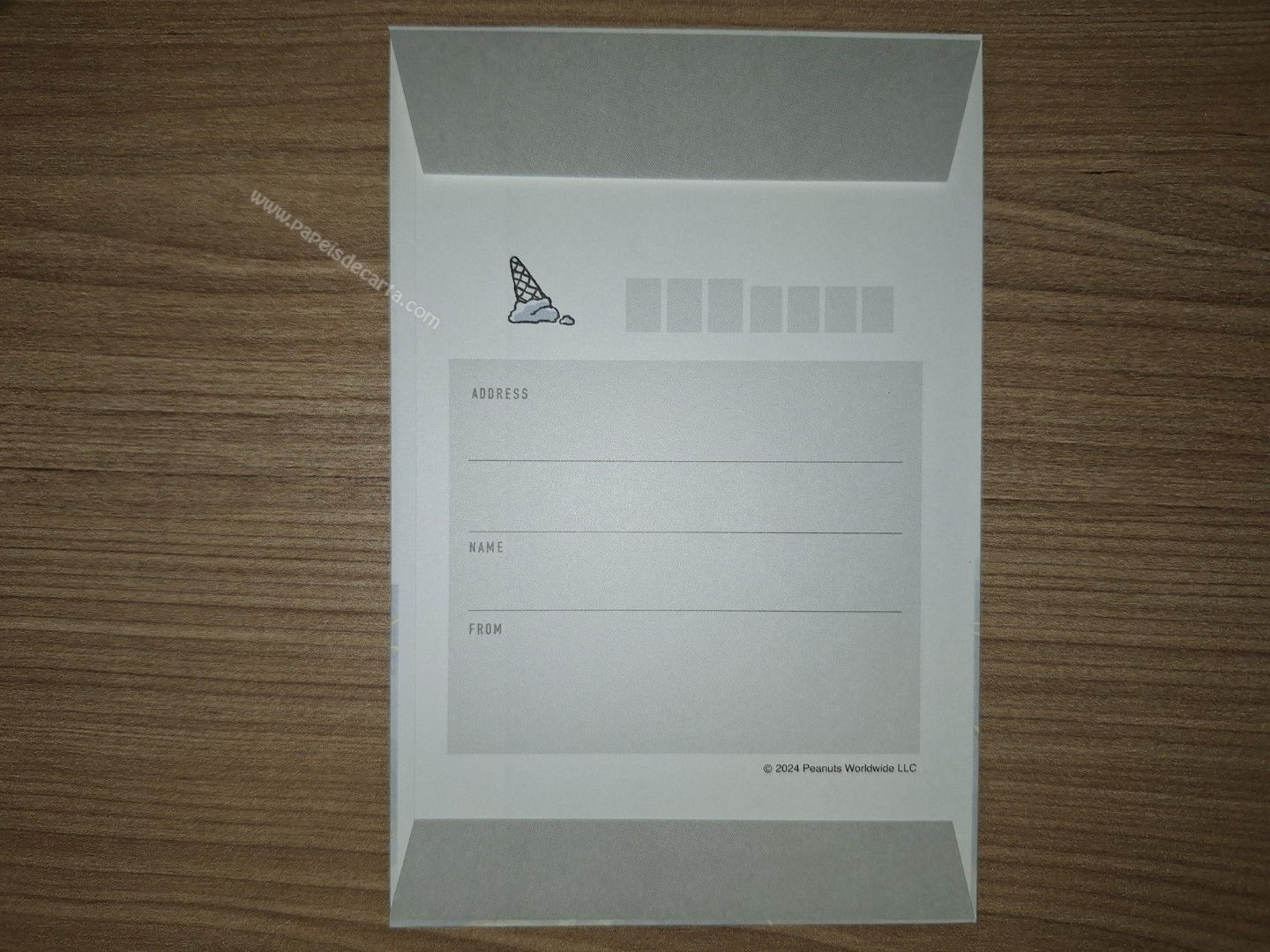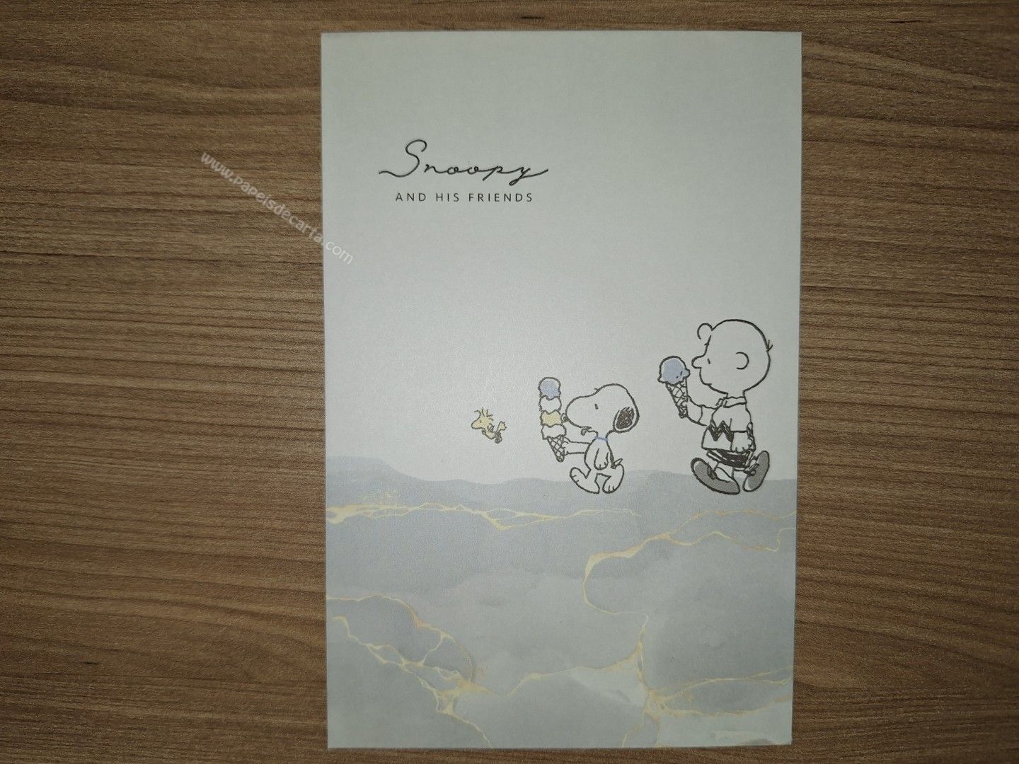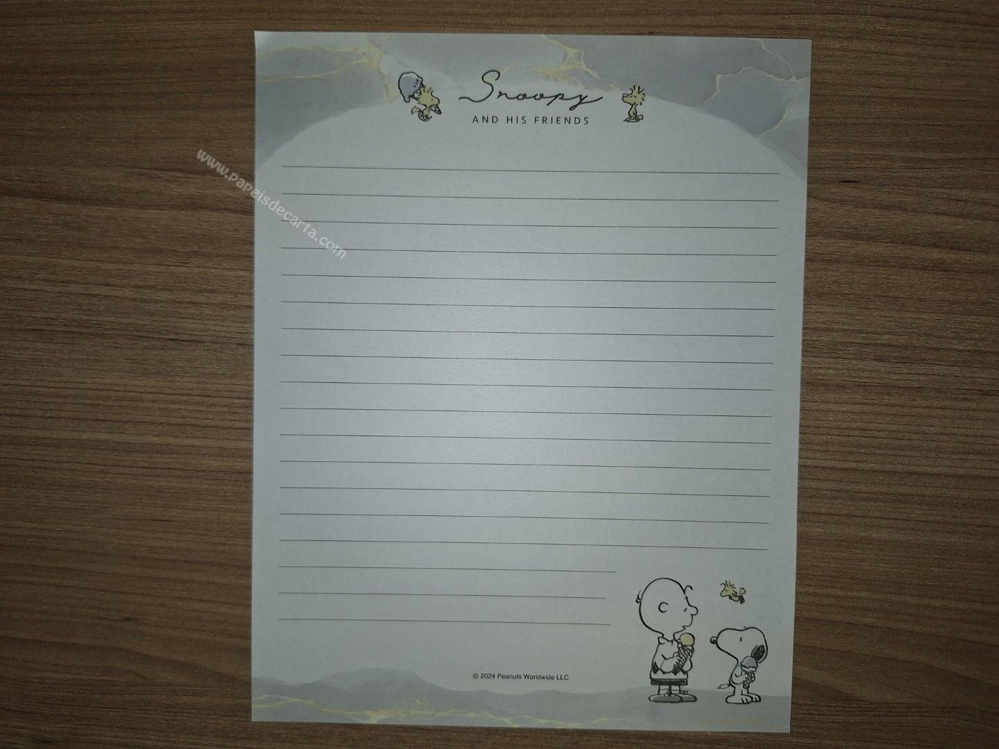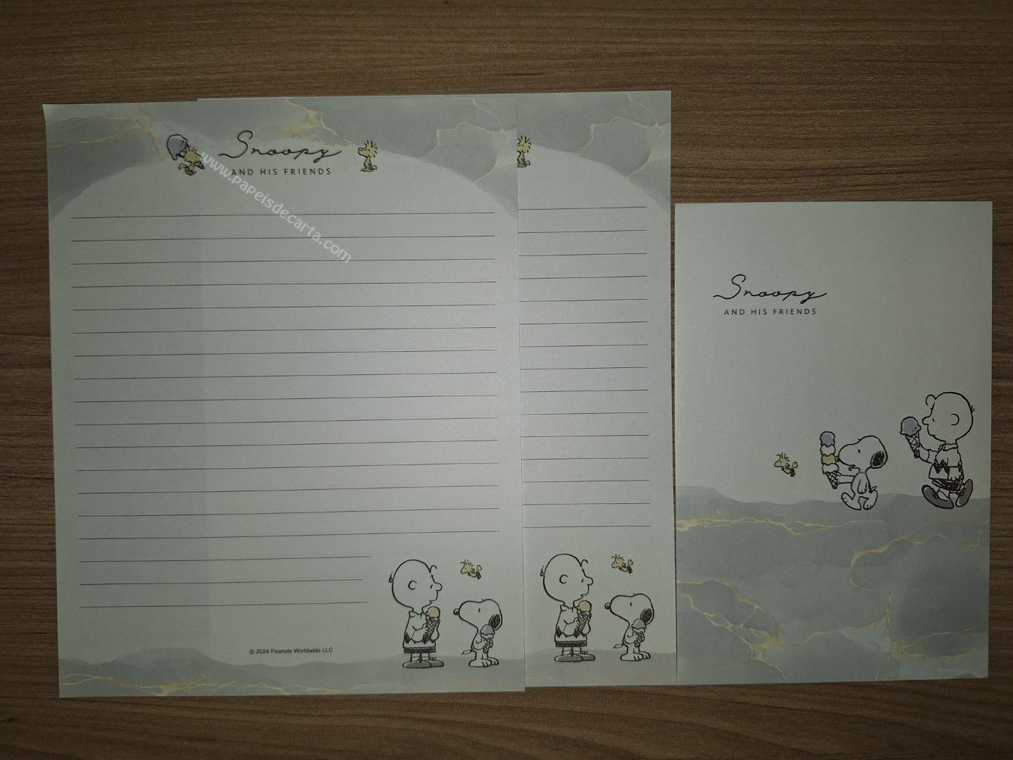 Conjunto de Papel de carta do Snoopy, com 2 folhas e 1 envelope. Tamanho médio.