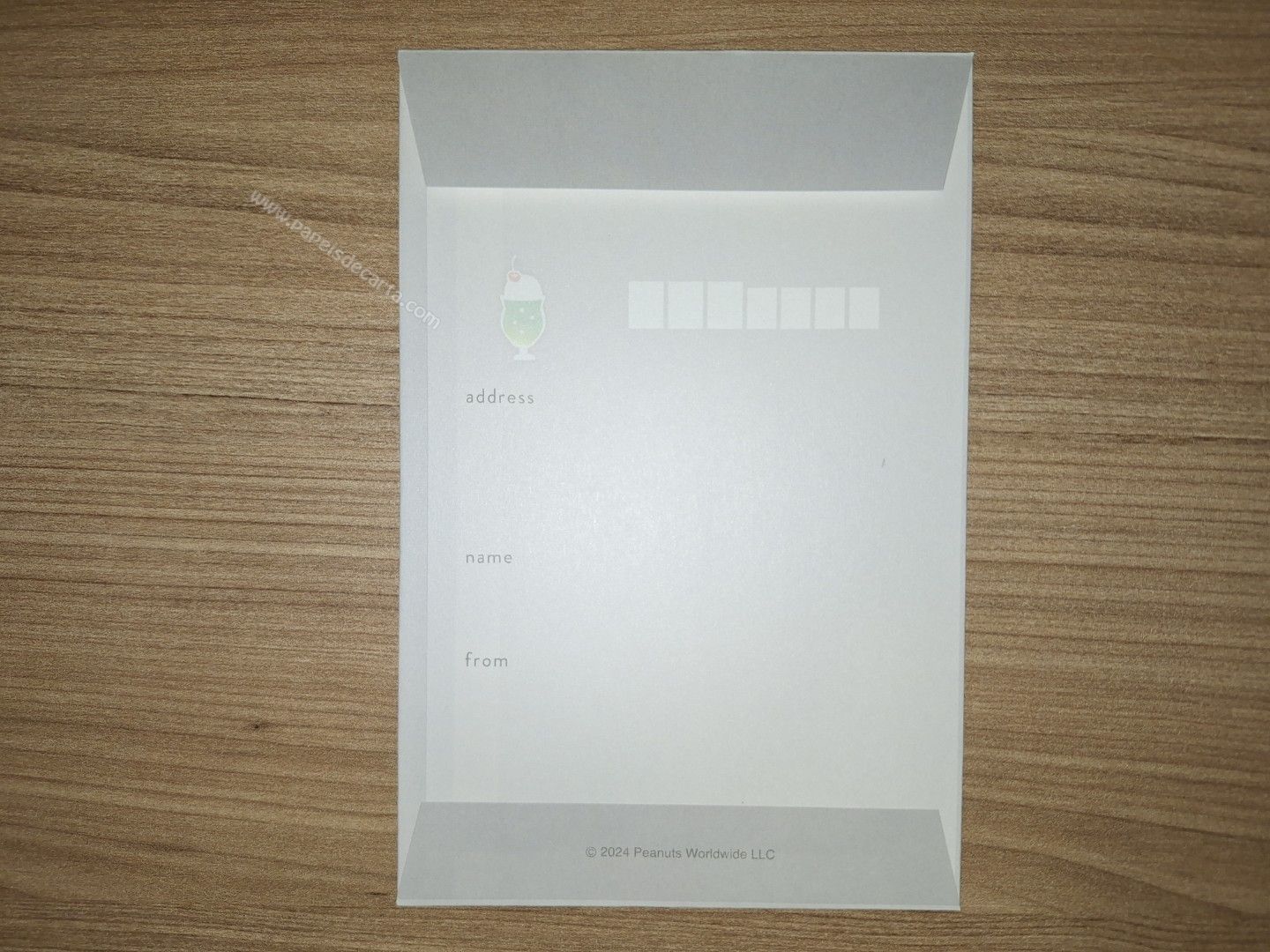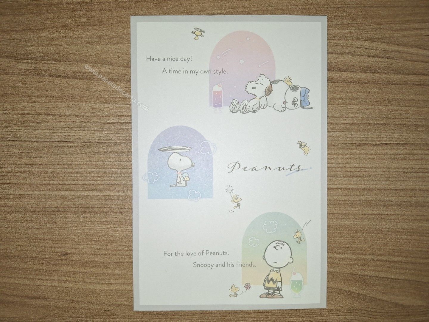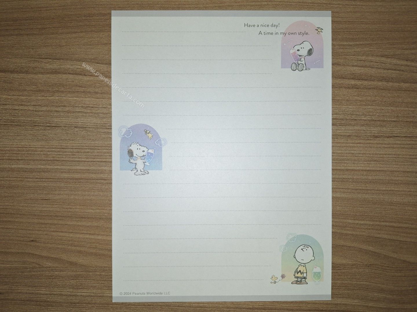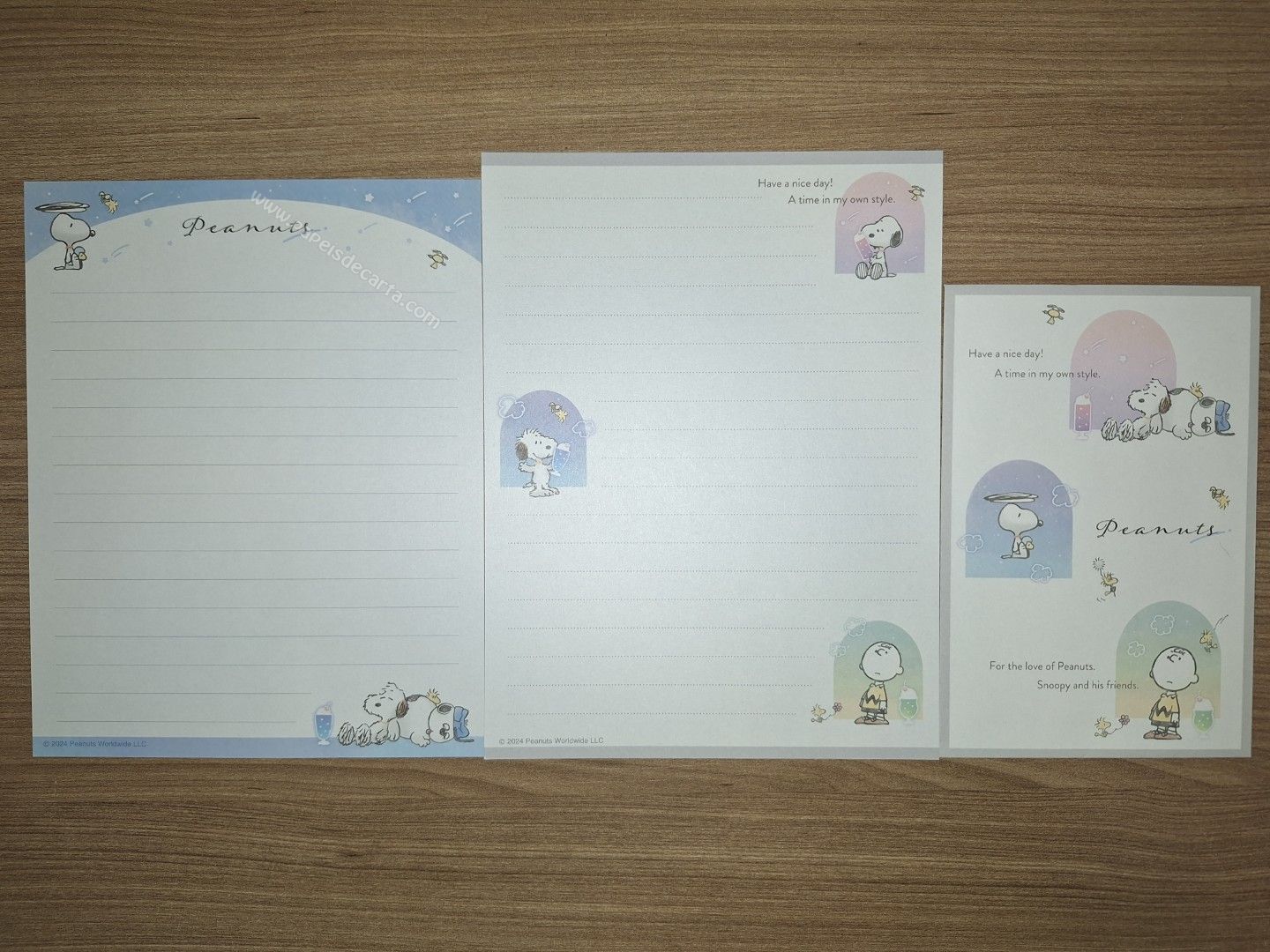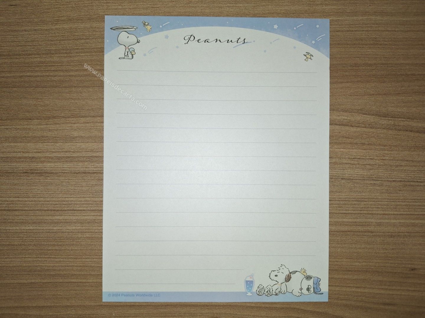 Conjunto de Papel de carta do Snoopy, com 2 folhas e 1 envelope. Tamanho médio.