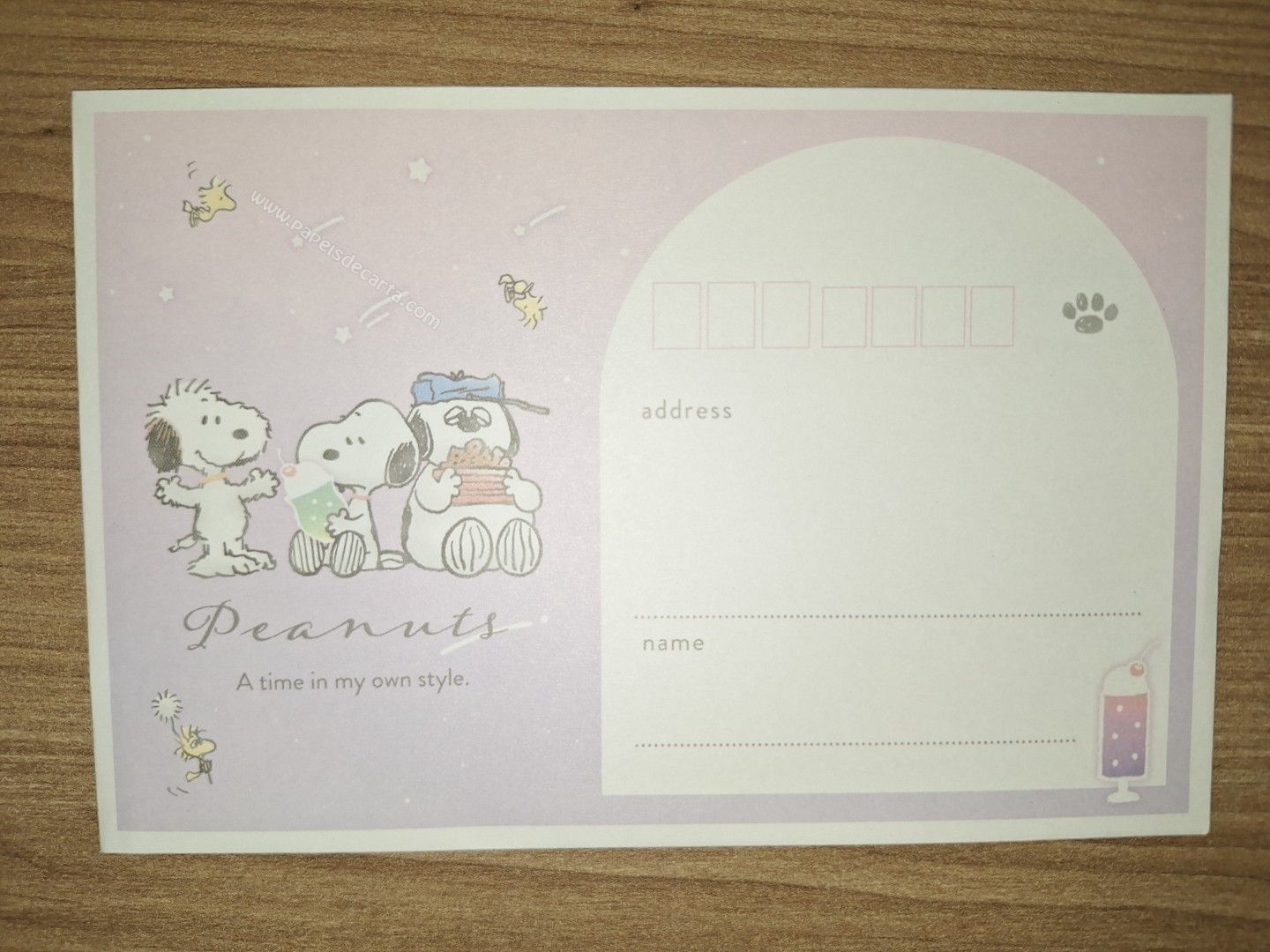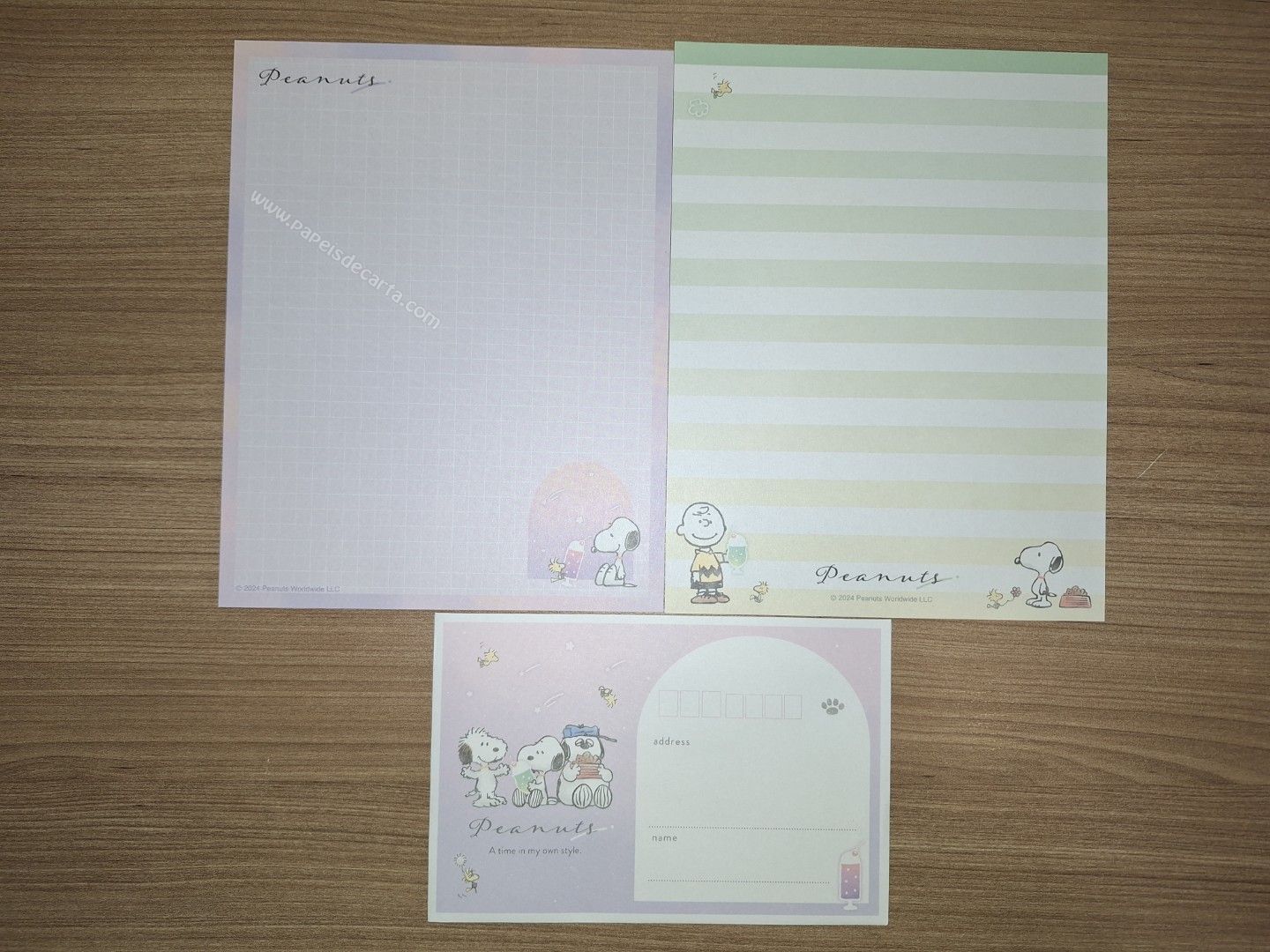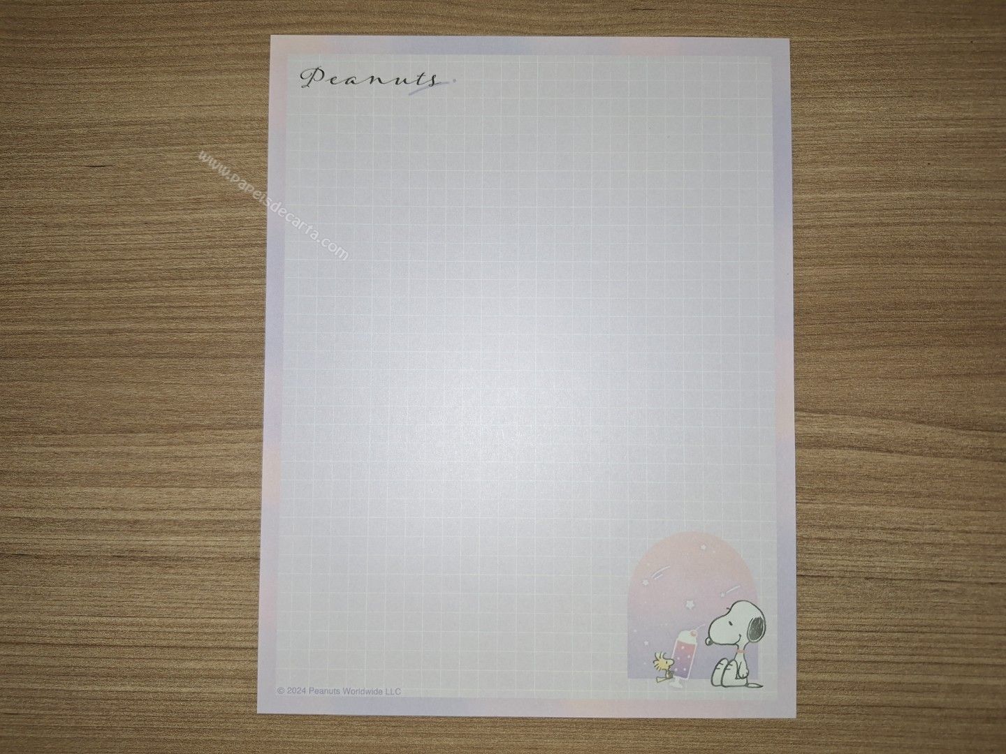 Conjunto de Papel de carta do Snoopy, com 2 folhas e 1 envelope. Tamanho médio.