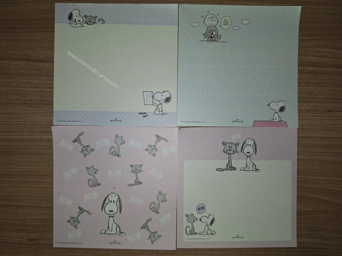Lote com 4 papéis de carta importado, tamanho pequeno do Snoopy. Medidas: Larg: 10cm x alt: 10cm.