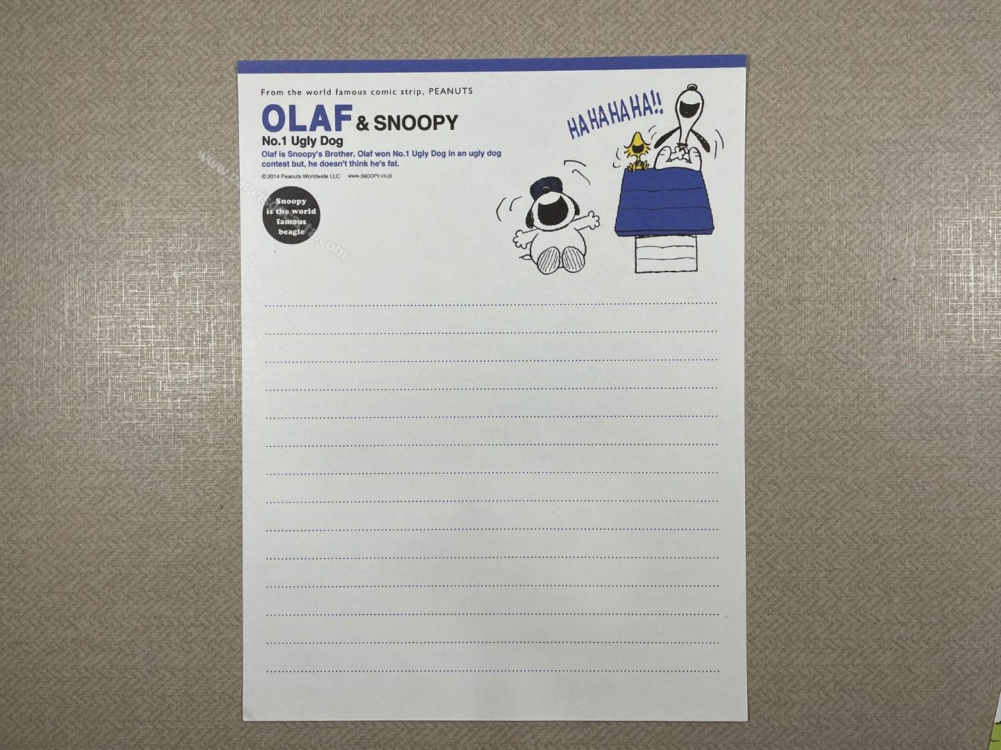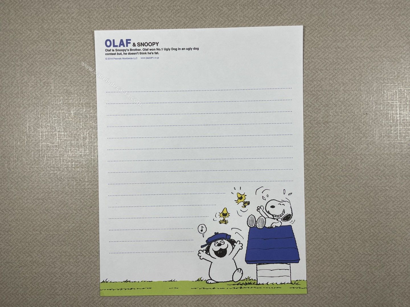Conjunto de Papel de carta importado do Snoopy, com 2 folhas diferentes e 1 envelope. Tamanho médio.