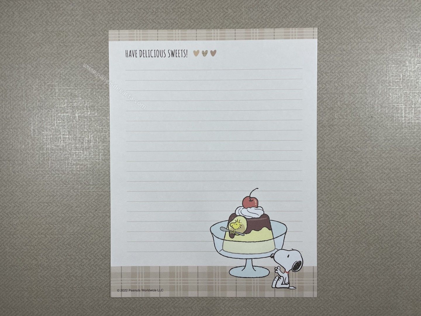 Conjunto de Papel de carta importado do Snoopy, com 2 folhas iguais e 1 envelope. Tamanho médio.