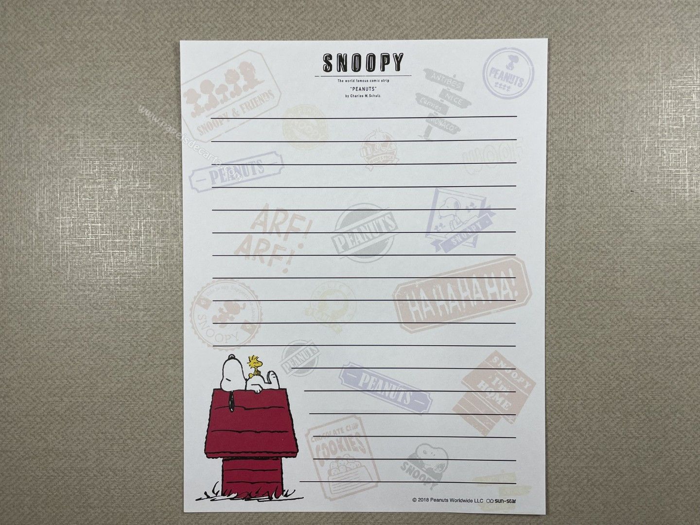 Conjunto de Papel de carta importado do Snoopy, com 2 folhas iguais e 1 envelope. Tamanho médio.