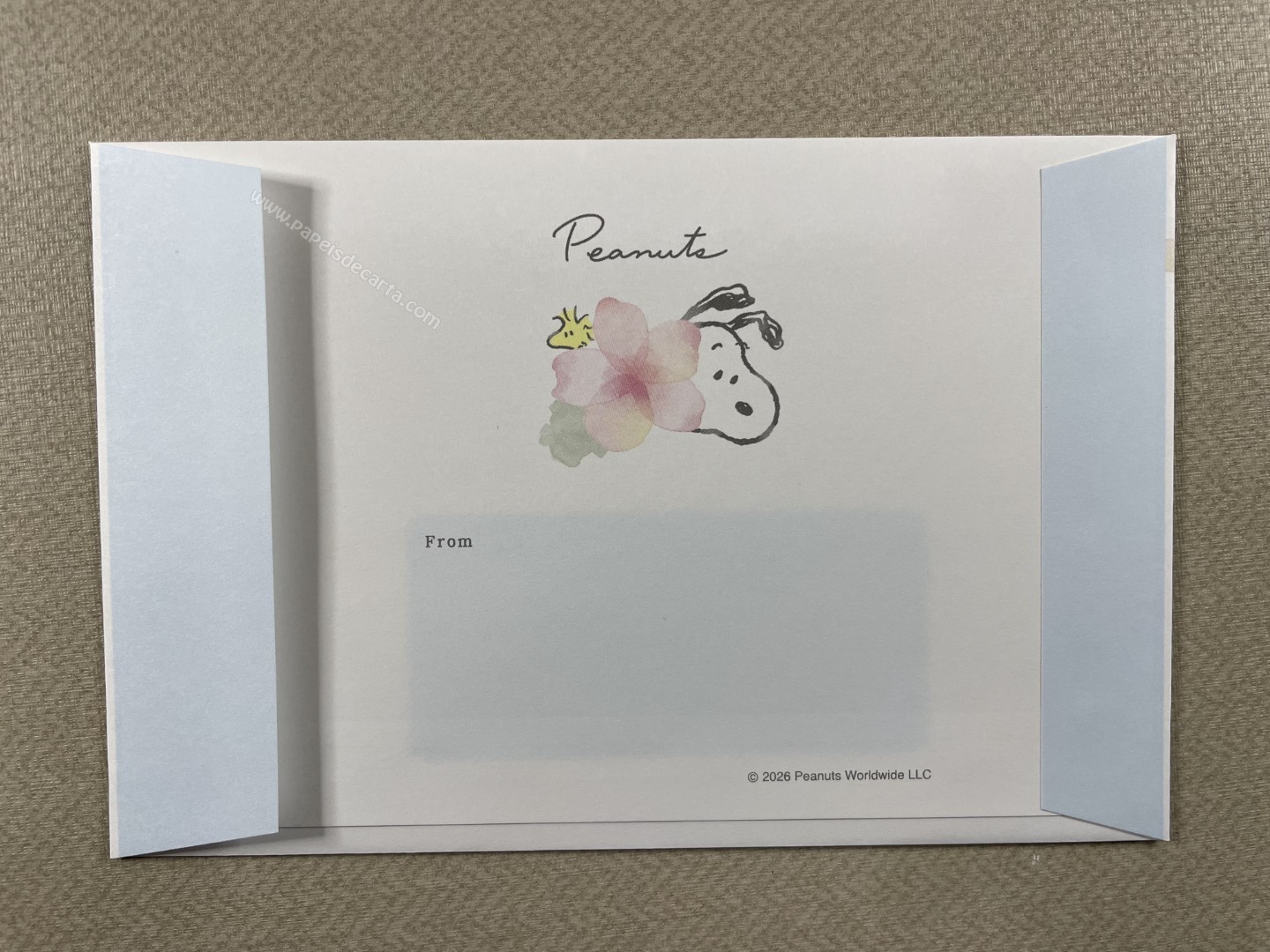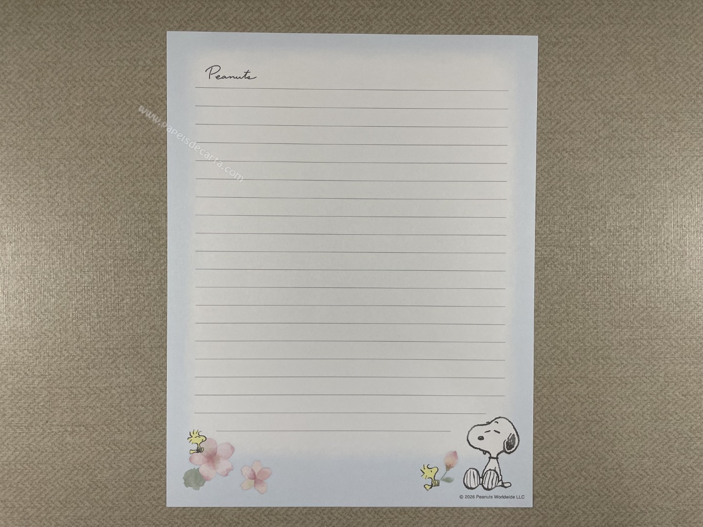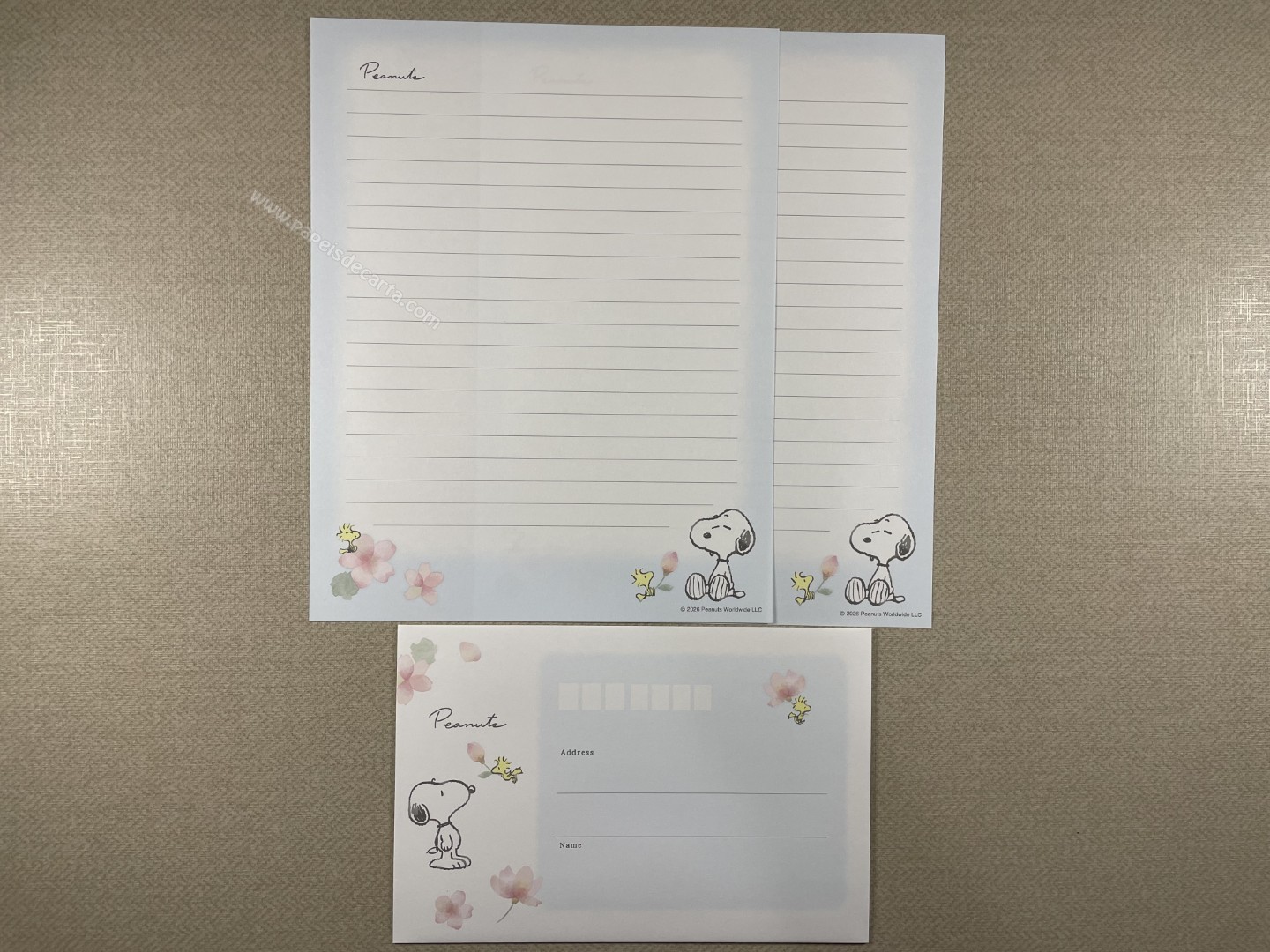Conjunto de Papel de carta importado do Snoopy, com 2 folhas e 1 envelope. Tamanho médio.