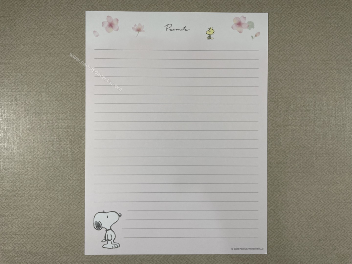 Conjunto de Papel de carta importado do Snoopy, com 2 folhas e 1 envelope. Tamanho médio.