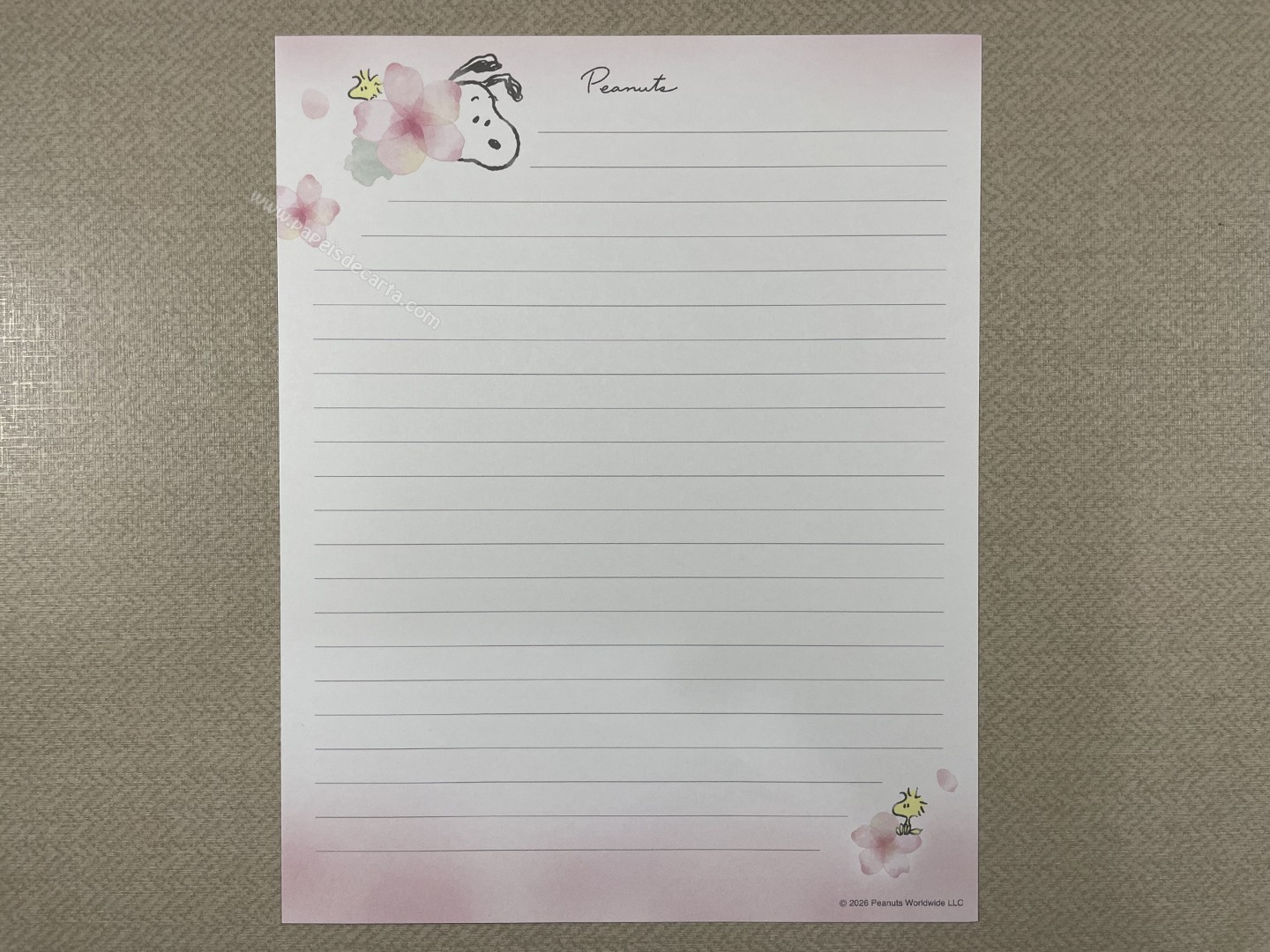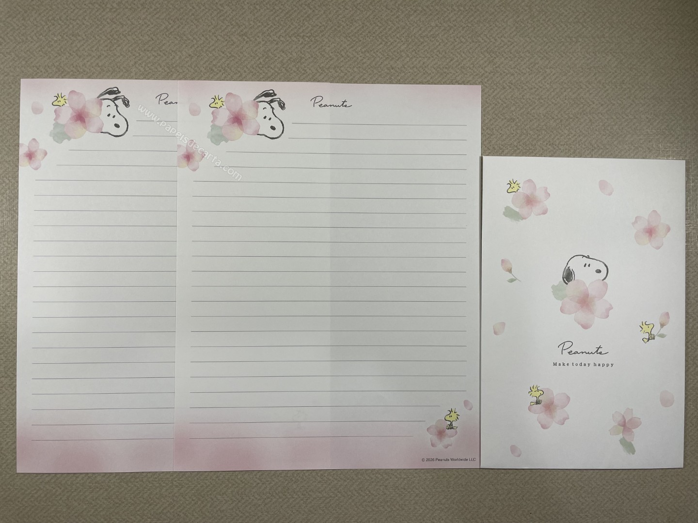 Conjunto de Papel de carta importado do Snoopy, com 2 folhas e 1 envelope. Tamanho médio.