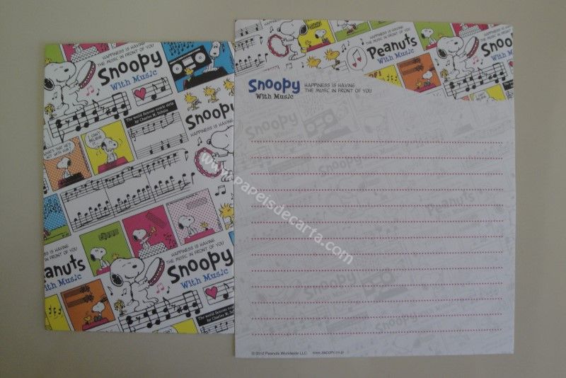 Conjunto importado, de papel de carta com 1 folha e 1 envelope do Snoopy.