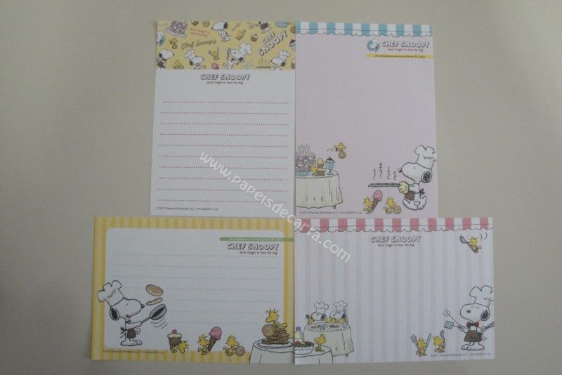 Conjunto importado, de papel de carta com 4 notinhas diferentes do Snoopy.
