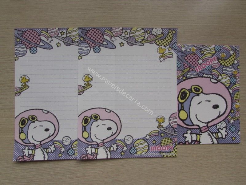 Conjunto importado, de papel de carta do Snoopy, com 2 folhas iguais e 1 envelope. Fabricante: Sanrio