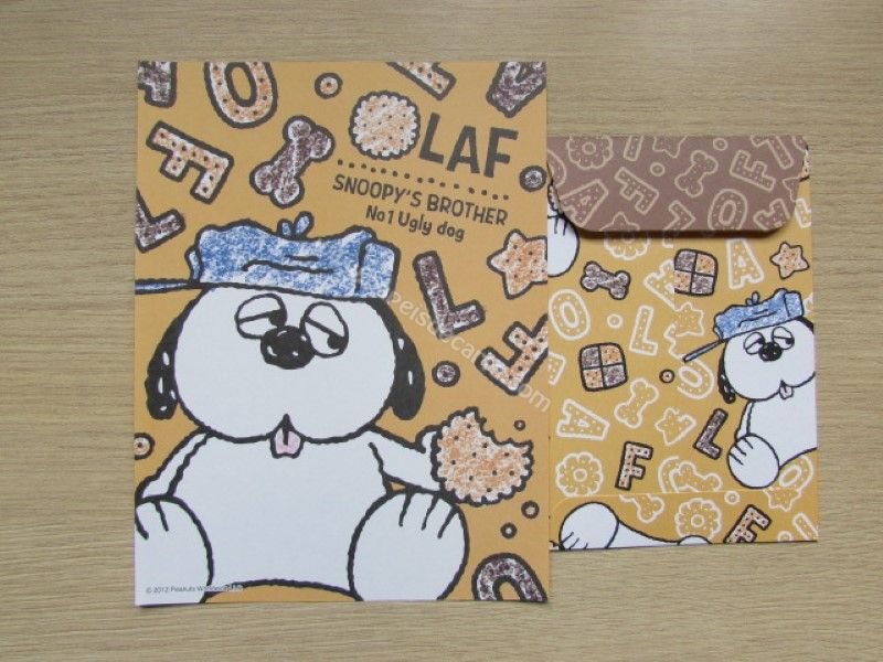 Conjunto importado, de papel de carta do Snoopy, com 1 folha e 1 envelope. Este conjunto faz parte da coleção Spoony & his friends e tem a participação o Olaf - irmão do Snoopy. Fabricante: Delfino.