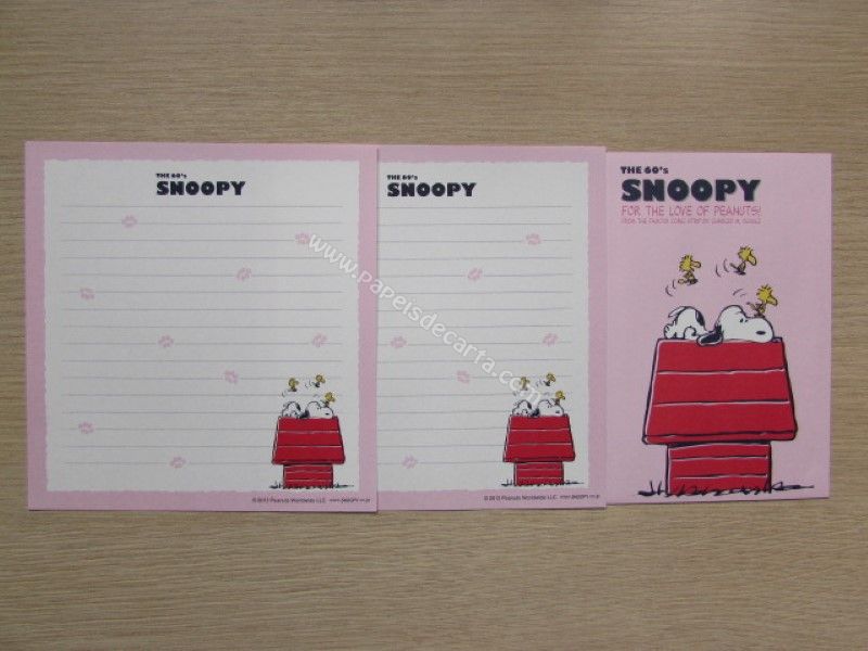 Conjunto com 2 folhas e 1 envelope do Snoopy 90