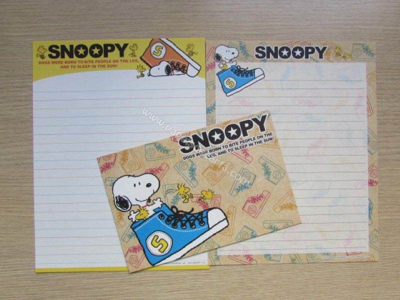 Conjunto importado, de papel de carta do Snoopy, com 2 folhas diferentes e 1 envelope. Fabricante: Kamio.