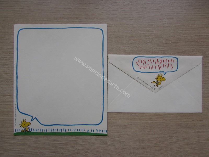 Papel de carta com 1 folhae 1 envelope antigo do Snoopy, tamanho um pouco maior que o médio.