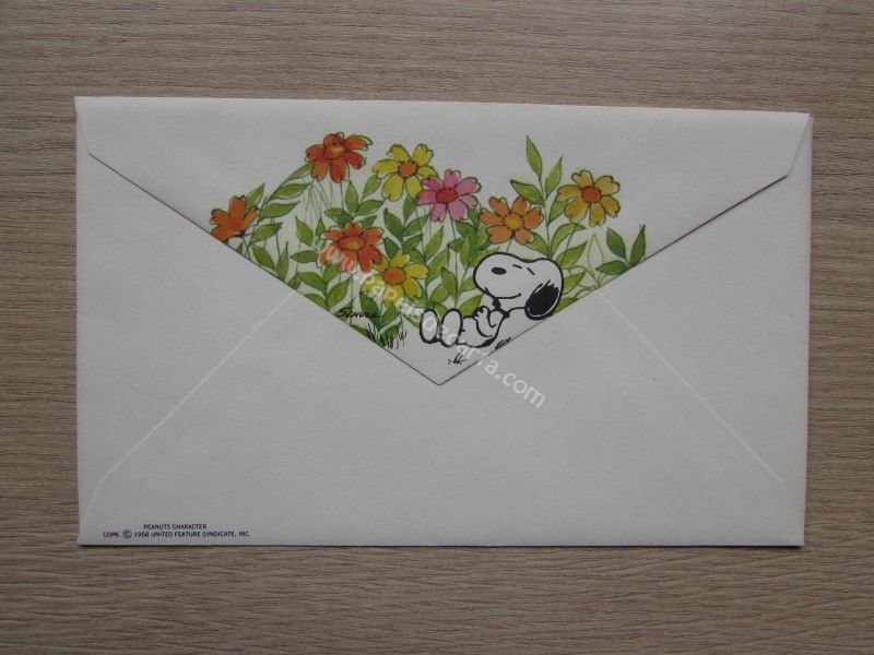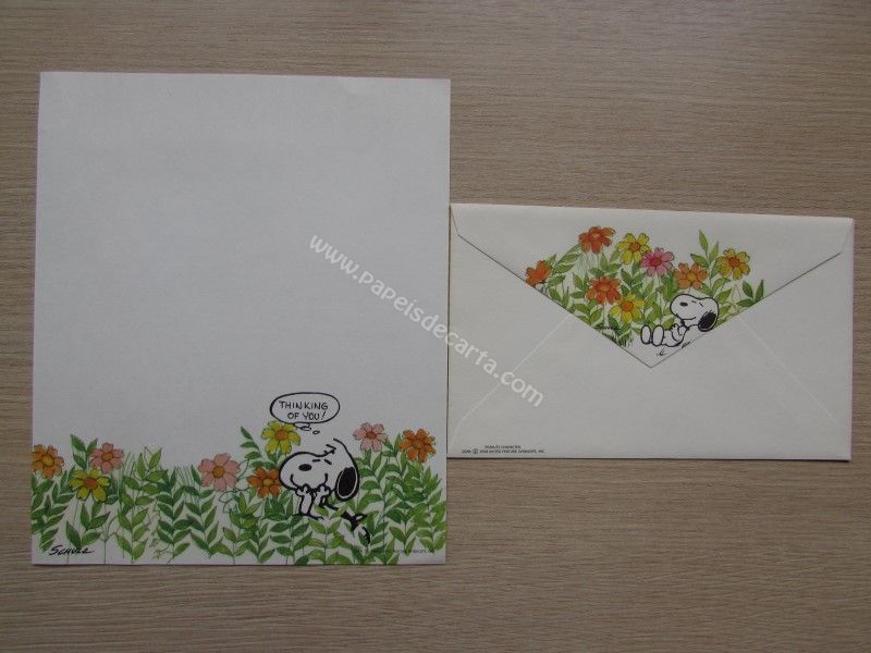Papel de carta com 1 folhae 1 envelope antigo do Snoopy, tamanho um pouco maior que o médio.
