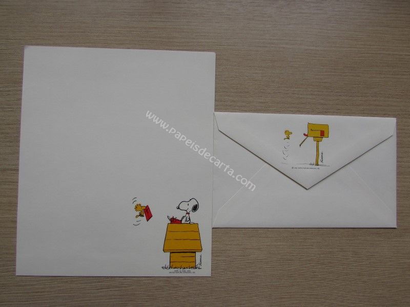 Papel de carta com 1 folhae 1 envelope antigo do Snoopy, tamanho um pouco maior que o médio.