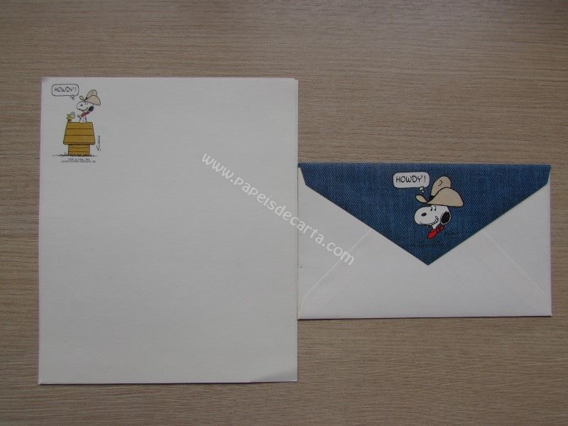 Papel de carta com 1 folhae 1 envelope antigo do Snoopy, tamanho um pouco maior que o médio.
