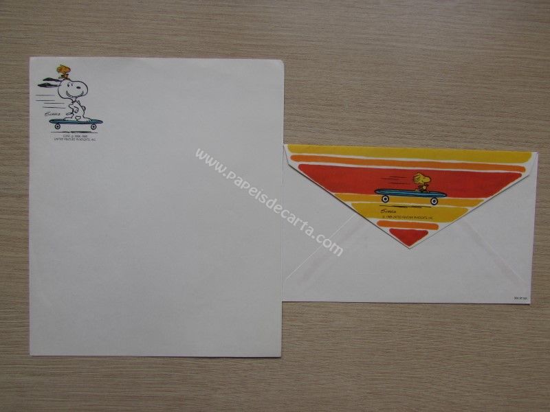 Papel de carta com 1 folhae 1 envelope antigo do Snoopy, tamanho um pouco maior que o médio.