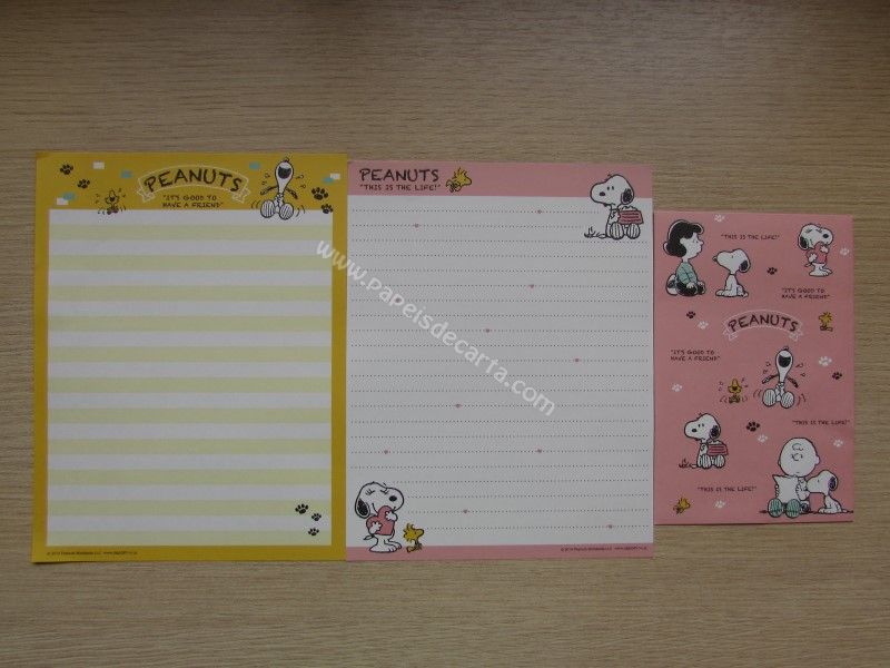 Conjunto com 2 folhas e 1 envelope do Snoopy 123