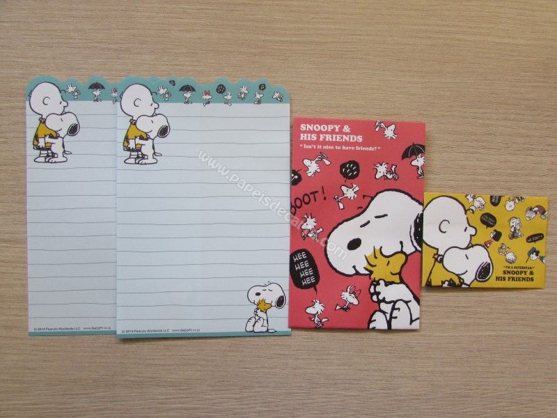Conjunto com 2 folhas pequenas, 1 envelope pequeno e 1 mini envelope do Snoopy 04