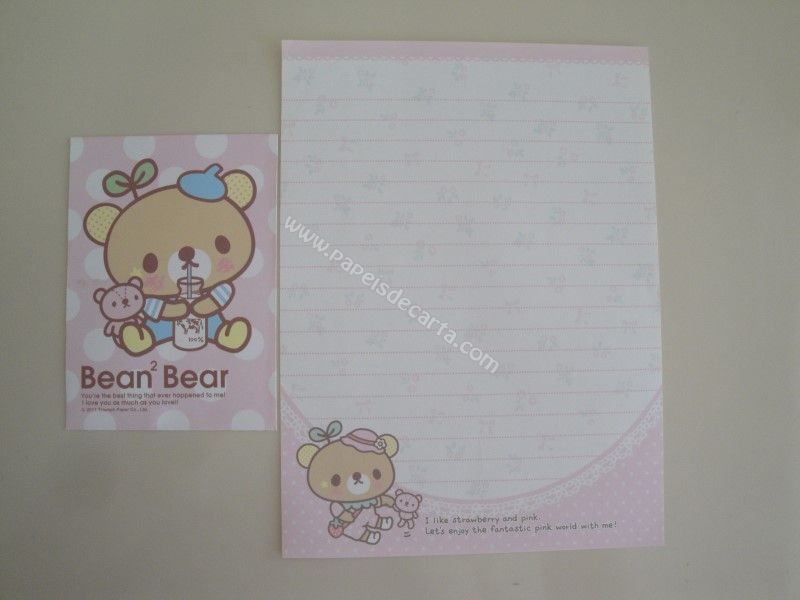 Conjunto importado, de papel de carta com 1 folha e 1 envelope pequeno do Bean a Bear.