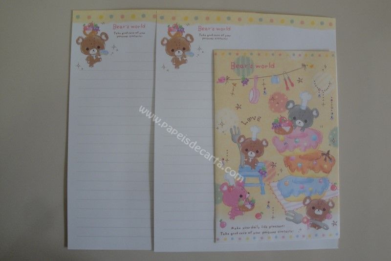 Conjunto importado, de papel de carta com 2 folhas iguais e 1 envelope do Bears World, da Humming Letter. Cor: Amarelo