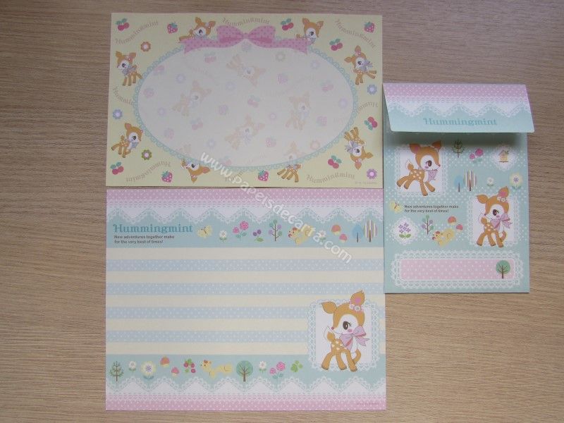 Conjunto importado, de papel de carta com 2 folhas diferentes e 1 envelope do Hummingmint, da Sanrio.
