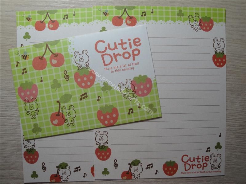 Conjunto importado, de papel de carta com 2 folhas iguais e 1 envelope do Cutie Drop.