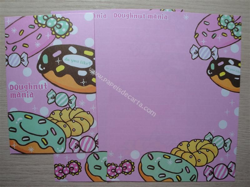Conjunto importado, de papel de carta com 2 folhas iguais e 1 envelope do Doughnut Mania.