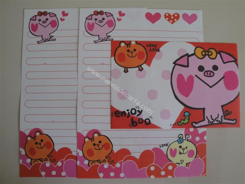 Conjunto importado, de papel de carta com 2 folhas iguais e 1 envelope do Enjoy Boo.