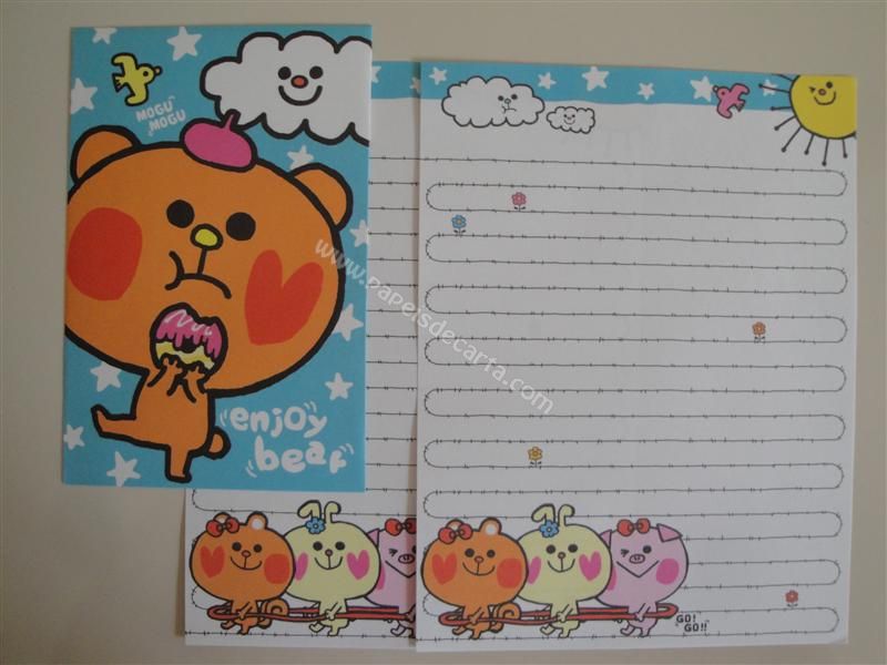 Conjunto importado, de papel de carta com 2 folhas iguais e 1 envelope do Enjoy Bear.