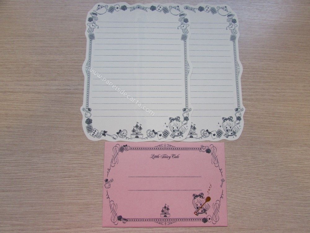 Conjunto importado, de papel de carta com 2 folhas iguais e 1 envelope da Little Fairy Tale World.
