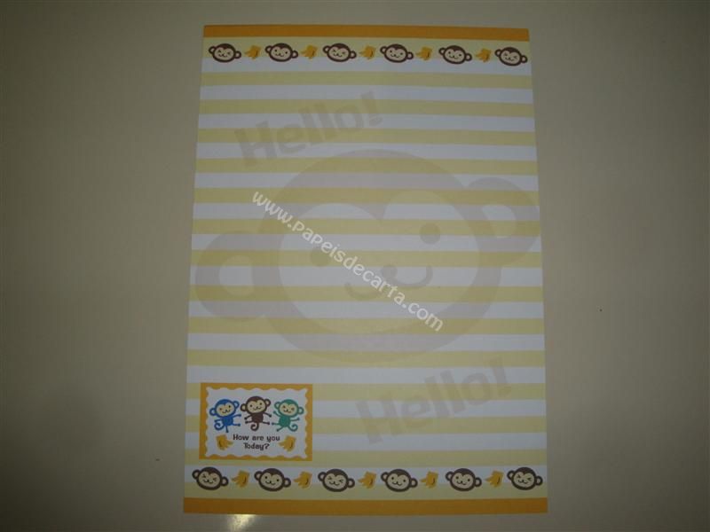 Papel de carta importado do Fatiao Monkey. Frase: Hello! Hello! - How are you today?
