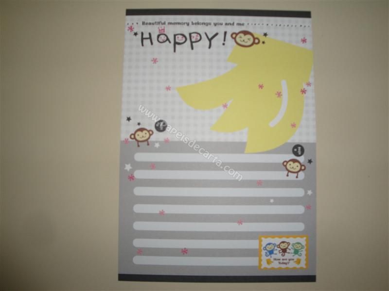 Papel de carta importado do Fatiao Monkey. Frase: Happy! - Beautiful memory belongs you and me.