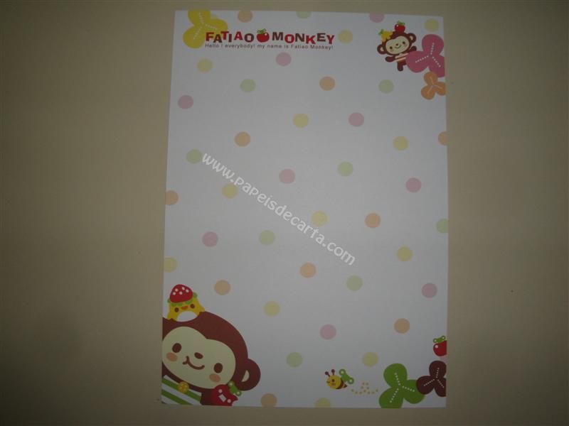 Papel de carta importado do Fatiao Monkey. Frase: Hello! Everybody! My name is Fatiao Monkey!