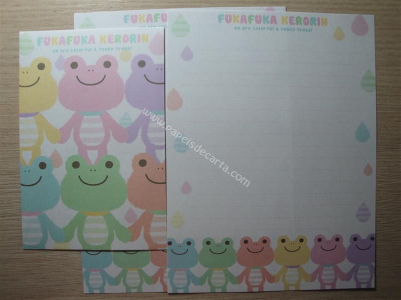 Conjunto importado, de papel de carta com 2 folhas iguais e 1 envelope do Fukafuka Kerorin.
